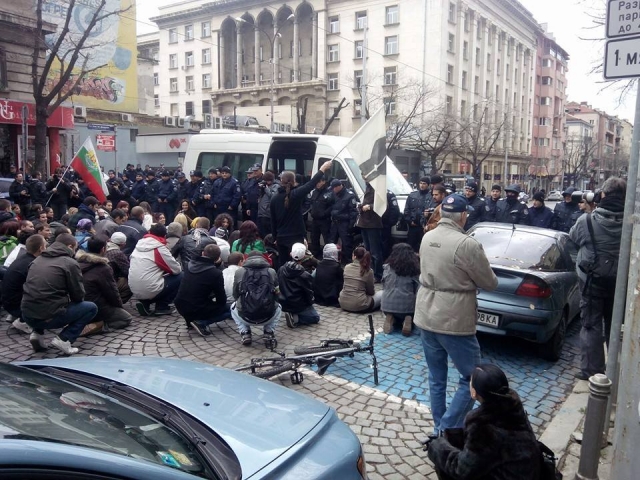 По-голямата част от протестиращите при Народното събрание се насочи по ул. „Аксаков” и ул. „Шести септември”. Те са спрели на края на улицата, където полицейски кордон ги спира да продължат нататък.