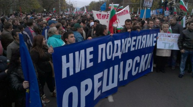 Според репортери има 25-30 хиляди протестиращи. Сред издигнатите плакати са: "Орешарски - премиер на европейска Българи", "Беден народ, богат президент", "Ние сме глас за Орешарски", "Бойко на съда за Мишо Бирата".