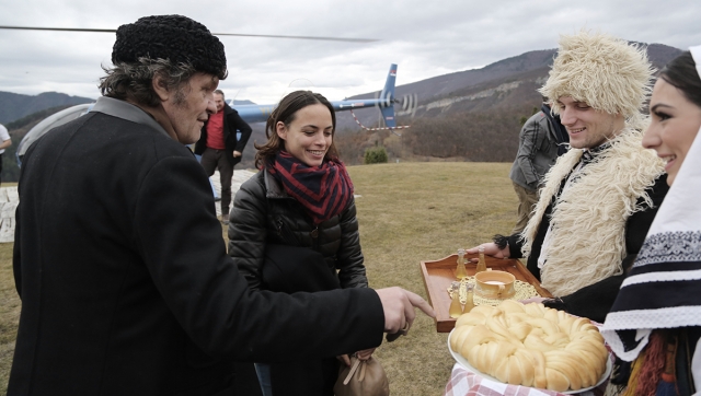 Преди официалното откриване Емир Кустурица посрещна гостите, които пристигнаха тук с хеликоптери. С хляб и сол, поднесени от момчета и момичета в национални сръбски носии, бяха посрещнати френската актриса от аржентински произход Беренис Бежо, която тази година е председател на журито на фестивала, и полския режисьор Януш Камински. Ден по-рано пристигна иранският режисьор Асгар Фархади. Новият му филм "Миналото" беше първата лента, показана на фестивала в събота.