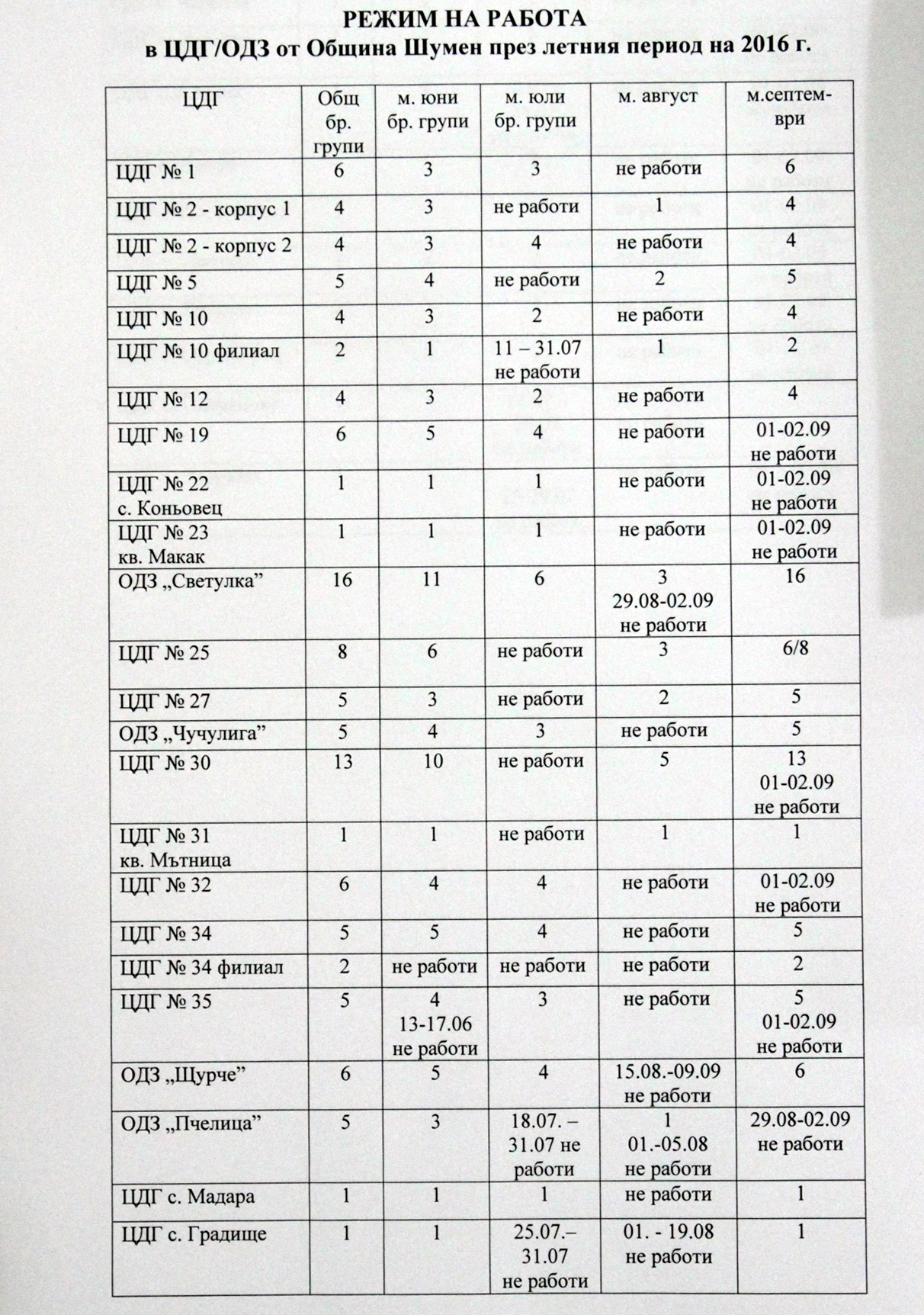 Той допълни, че съгласно заповедта при необходимост ще бъдат разкрити допълнителни групи, а при намаляване посещението на децата групите ще бъдат редуцирани по предложение на директорите на детските заведения.