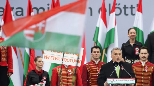 Вчерашният многохиляден "Поход на мира" в Будапеща на привържениците на Орбан, завършил с неговата реч на площада пред парламента, бе посветен и на националния празник на Унгария, която отбеляза 170 г. от революцията срещу Хабсбургите през 1848 г.