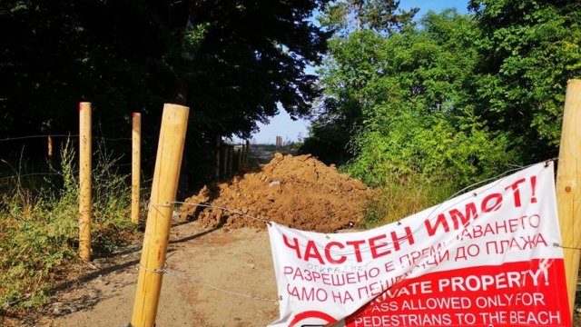 Проверяващите констатират, че там има телена ограда и натрупана пръст, което обаче "не затруднява достъпа до плажа."