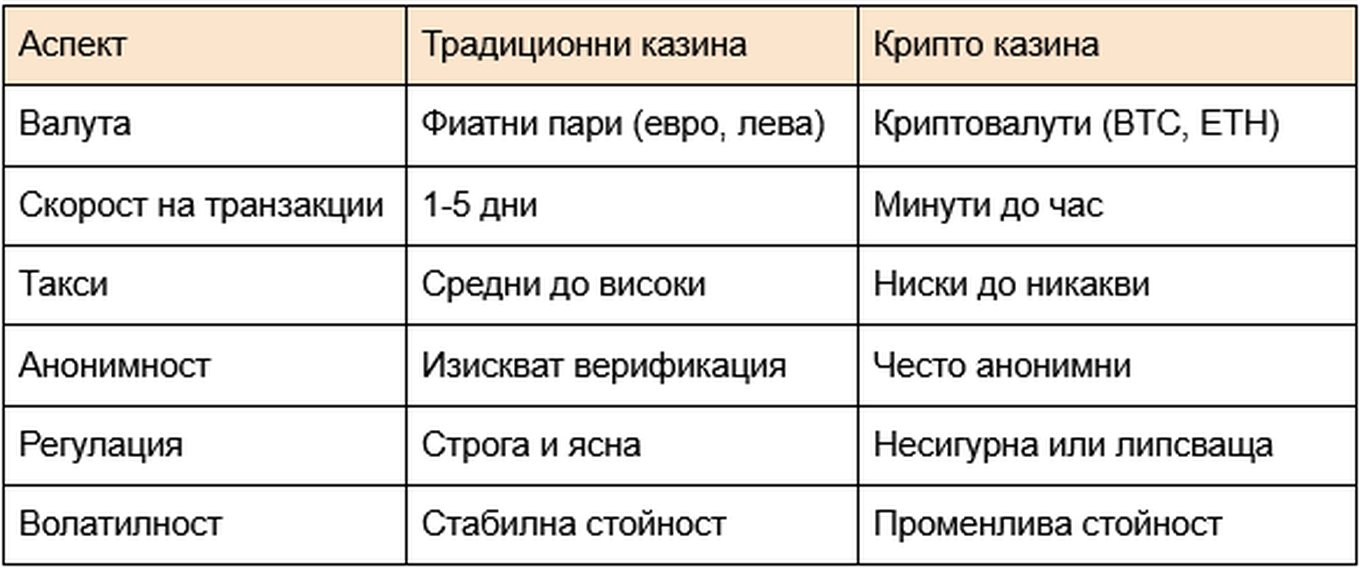 Разликите между крипто и традиционните казина са значителни на много нива. Ето ключовите различия: