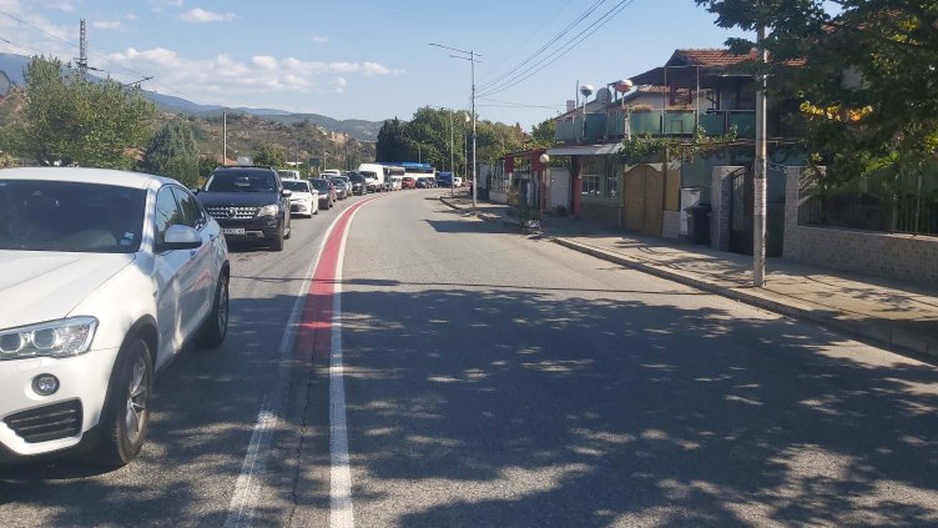 Колоната от автомобили започва от Симитли. Колите изчакват на място повече от половин час.