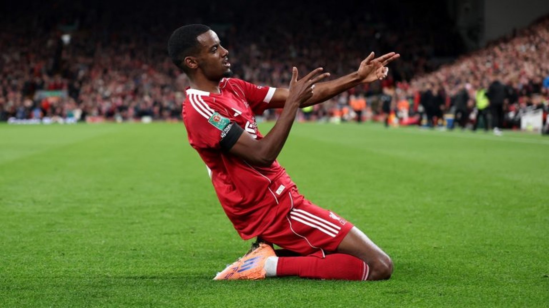 Минута по-рано 18-годишният италиански защитник Джовани Леони напусна на носилка след тежък удар и вероятно изключително неприятна контузия, която получи край тъчлинията при сблъсък със съперник. А дебютантът, привлечен през лятото от Парма, изглеждаше много добре в първия му мач за Ливърпул.