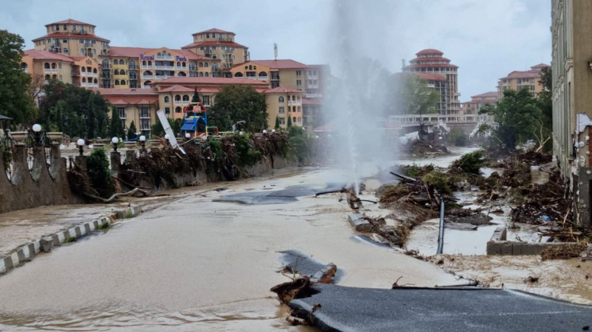 Заради пороя приливна вълна е заляла всички хотели и сгради във ваканционното селище, което се намира на около 5 километра от Свети Влас.