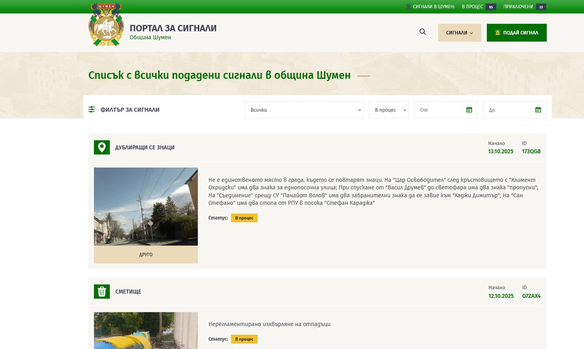Няма такъв служител в Община Шумен който да го трогнете с вашите сигнали , този онлайн портал е направен за наивници отделно някой си е сложил солидна сума от изработката му