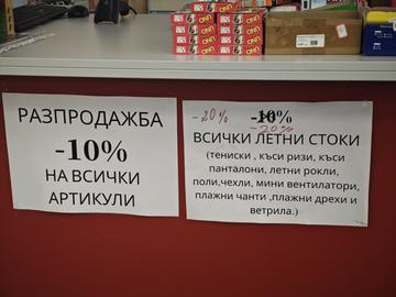 Китайският магазин „Калинка“ продължава своята финална разпродажба. Добрата новина е, че магазинът ще работи до края на месец октомври. Дотогава всички клиенти могат да се възползват от допълнителна 10% отстъпка на всички стоки. Летните стоки пък са с още по-голямо намаление – 20%.