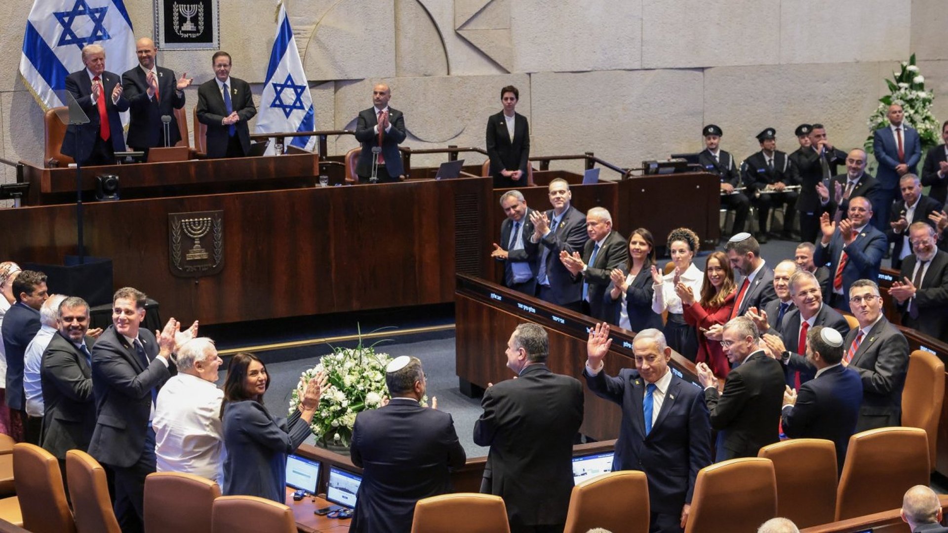 Преди Тръмп да се обърне към израелския парламент след среща със семействата на заложниците, израелските депутати го аплодираха на крака няколко пъти и приветстваха също държавния секретар Марко Рубио и министъра на отбраната на САЩ Пит Хегсет.