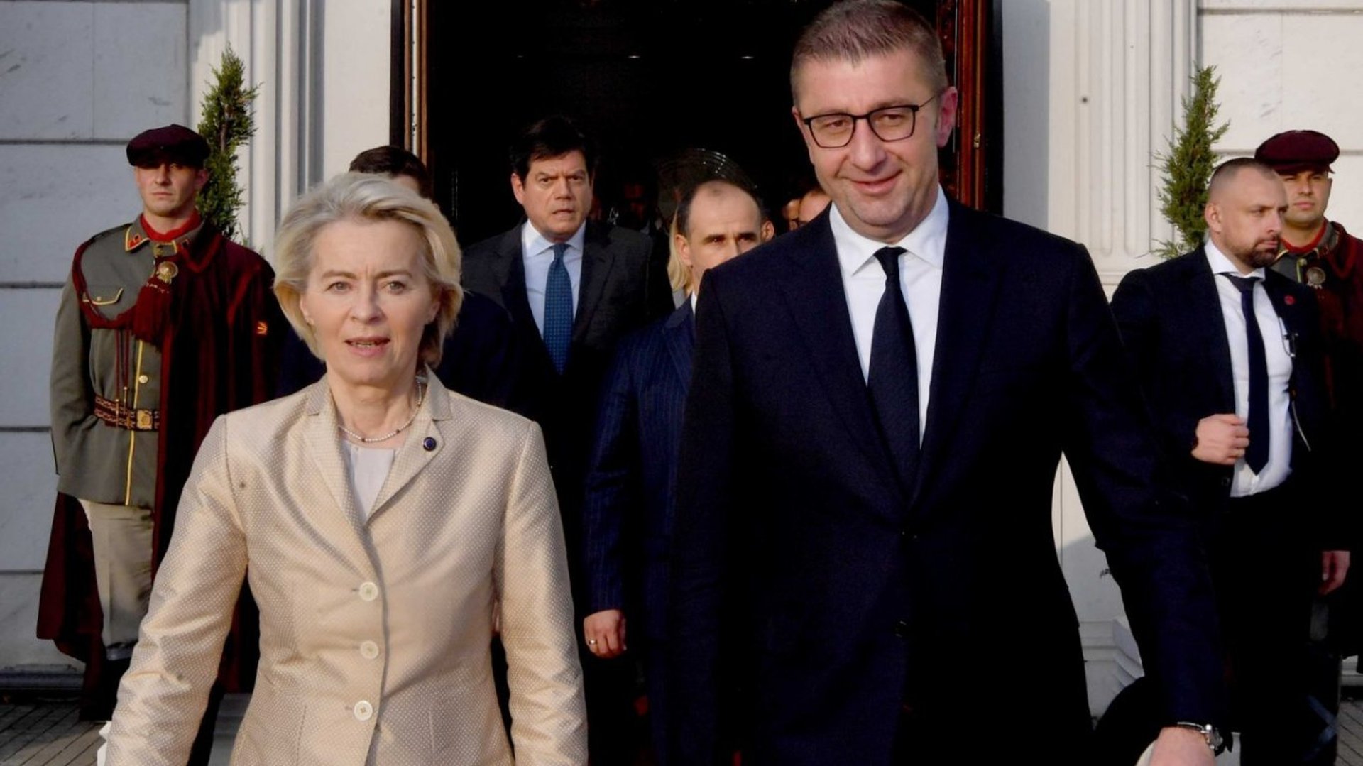 "Напълно подкрепяме Северна Македония по пътя ѝ към ЕС. Можете да разчитате на нас. Следващата и единствена стъпка преди започването на преговорите е ясна. Трябва да направите договорената конституционна промяна. Топката е във вашето поле. ЕС е готов", написа председателят на ЕК Урсула фон дер Лайен в платформата "Екс" след срещите си в Скопие, в рамките на балканската си обиколка, съобщават медиите в Северна Македония.