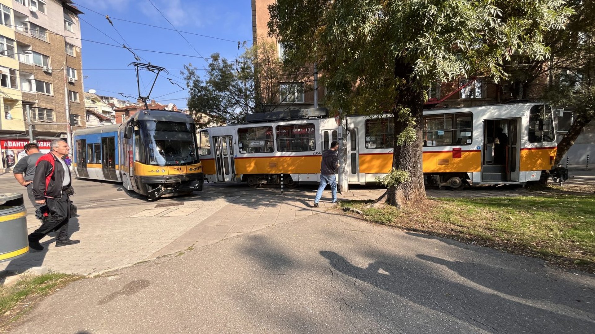 Движението на трамваите по бул. "Христо Ботев" в двете посоки е спряно. Заради катастрофата в района се е образувало голямо задръстване.