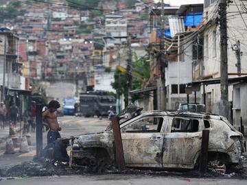 Ожесточени сблъсъци избухнаха, когато около 2500 служители по сигурността нахлуха във вторник сутринта във фавелите. Членовете на "Червената команда" (Comando Vermelho) отговориха с огън, запалени барикади и хвърляне на бомби от дронове.
