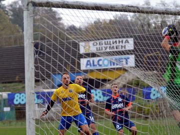 Срещата премина под диктовката на шуменските играчи. Още в първите минути те отправиха няколко опасни удари към вратата на противника, нацелиха и греда.