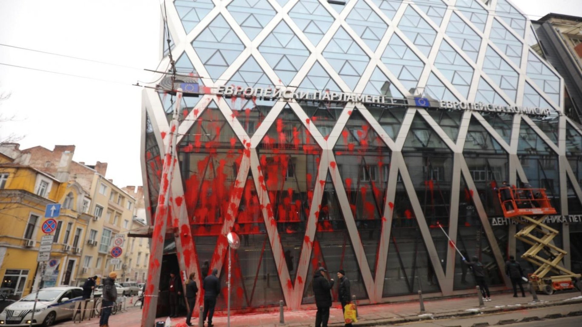 На 22 февруари протестиращи срещу еврото хвърляха червена боя и бомбички по сградата на ЕП и ЕК в столицата. Малко след това от Столичната дирекция на вътрешните работи съобщиха, че на протеста, организиран от партия "Възраждане", са ранени полицаи и са задържани шестима.