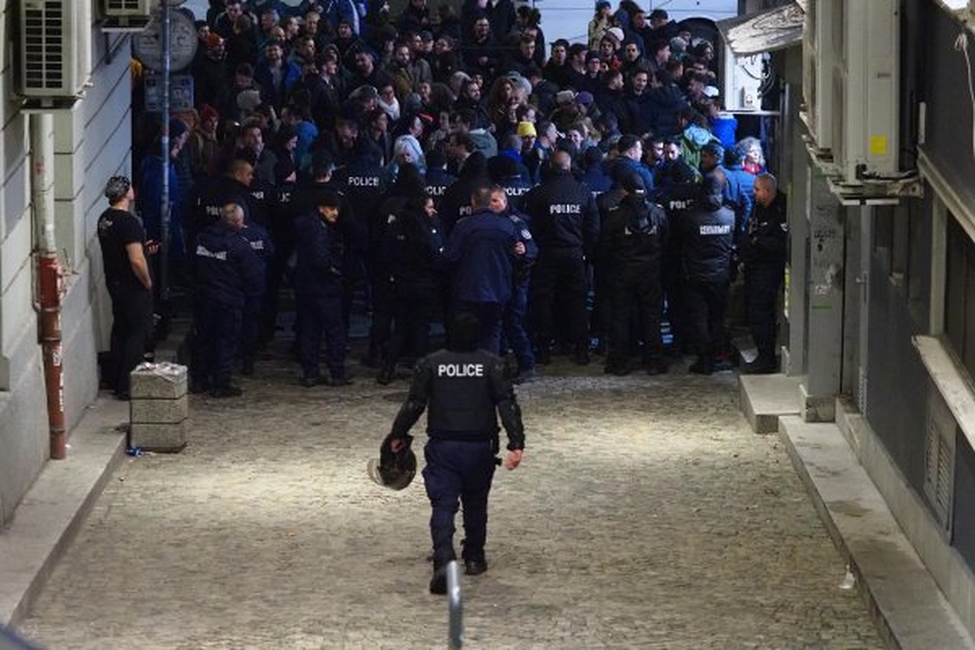 Полицейското присъствие остава изключително засилено, като органите на реда вече са с каски и шлемове. На кадри, разпространени от телевизия Bulgaria ON AIR се вижда и ранен полицай, който е изнесен от колегите си.
