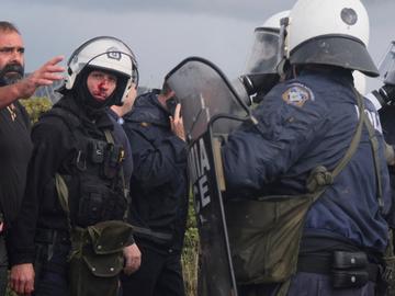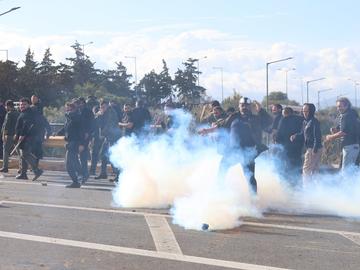 При сблъсъците, в които протестиращите хвърляха камъни по полицията, а тя отговори със сълзотворен газ, според първоначалните информации е бил ранен един полицай, а има твърдения и за още седем пострадали.