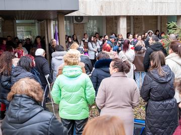 Около 100 сестри и акушерки от МБАЛ и Комплексния онкологичен център в Шумен излязоха днес на протест пред болницата с искания за достойно заплащане на труда им.