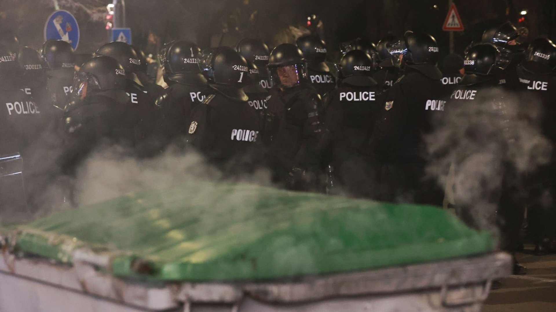 След като не получиха отговор облечените в черно младежи запалиха няколко кофи за боклук и ги избутаха към полицаите. После тръгнаха пак към паметника на Апостола на свободата.