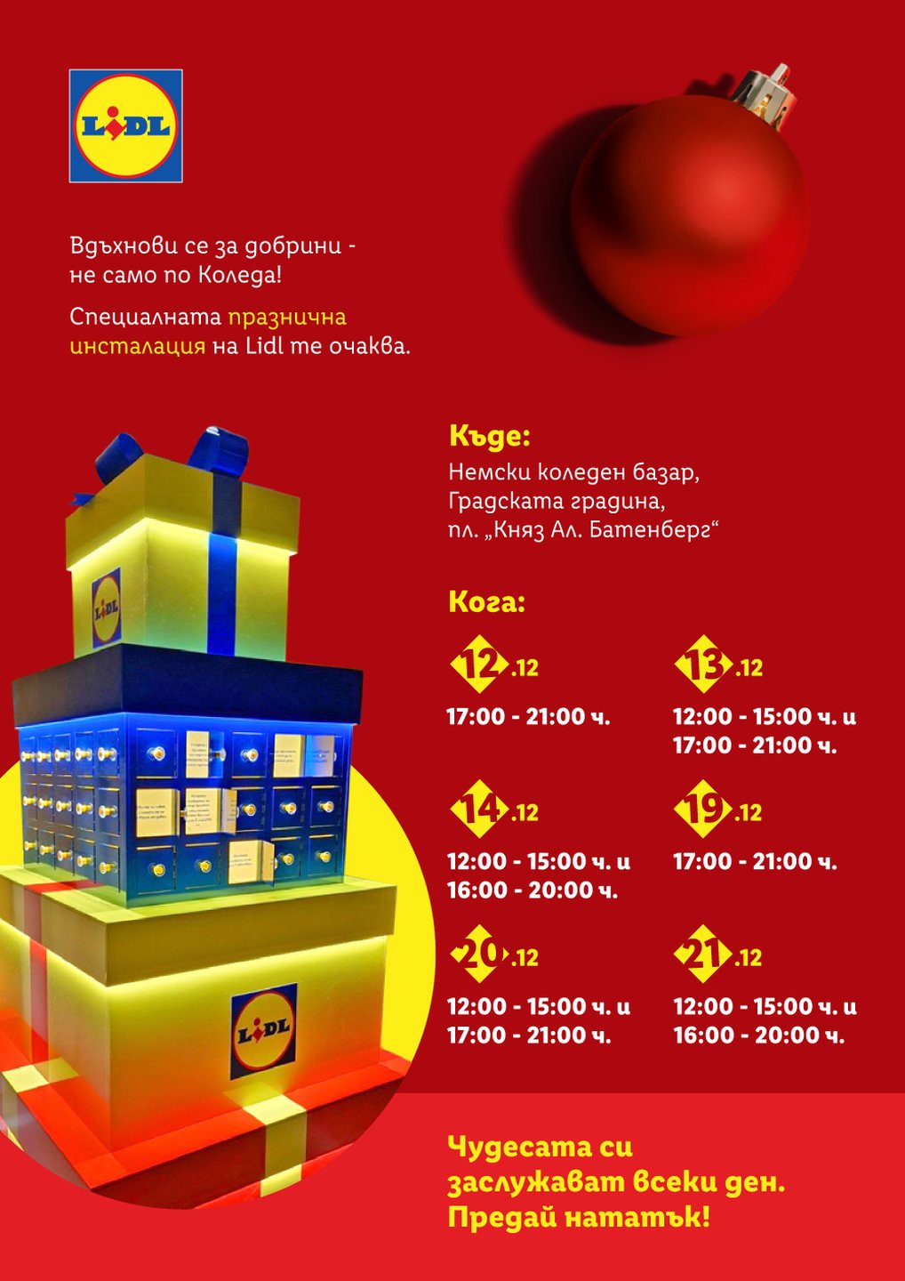 Тази идея стои в основата на международната коледна кампания на Lidl „Чудесата си заслужават всеки ден“, част от глобалната концепция „Lidl. Заслужава си“.