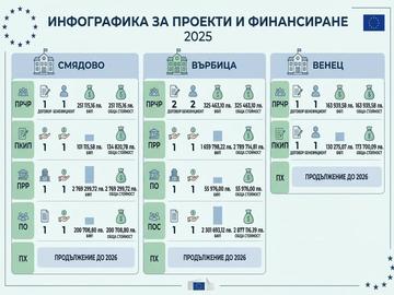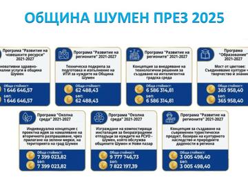 Най-голям бенефициент в областта очаквано е администрацията на Община Шумен . През 2025 г. кметството е сключило 7 договора за близо 30 млн. лв. /от тях малко над 27 млн. лв. е БФП/, което е половината от общия привлечен европейски ресурс в цялата област.