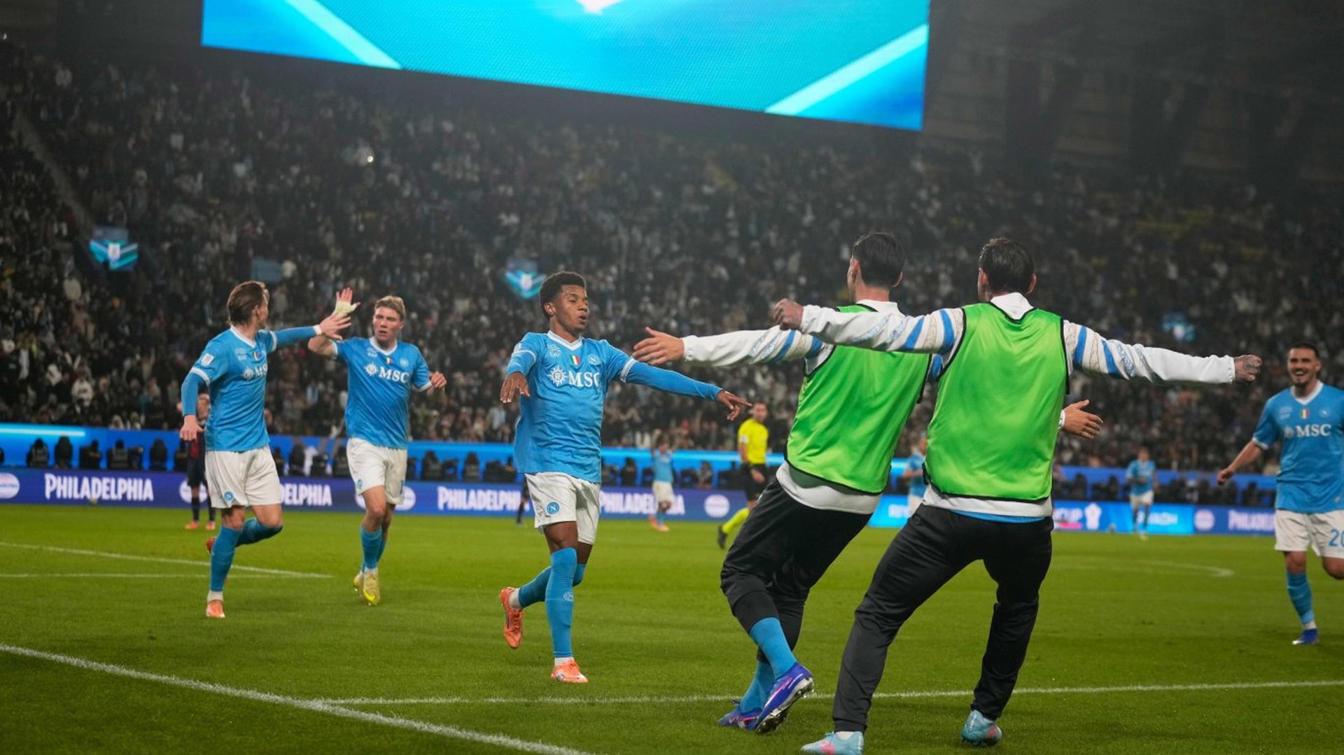 Наполи за трети път в историята си спечели Суперкупата на Италия. А случайно или не, точно както и при първия триумф, сега отново бразилец бе в основата на победата с 2:0 срещу Болоня във финала, който за четвърти пореден сезон се игра в Рияд, Саудитска Арабия.