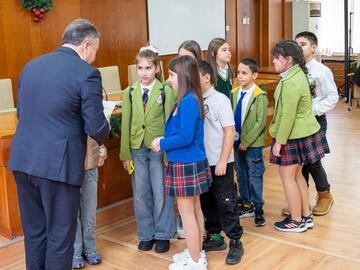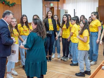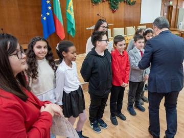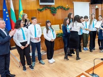 „През годината имах много срещи, обсъждахме проекти, работа, различни ангажименти. Всичко това, разбира се, е важно за Шумен, но когато говорим за смисъл и перспектива, няма по-ясен знак от срещата с децата с изявени дарби на Шумен. Защото вие носите нещо специално и това са талант, труд и надежда. Надежда, че Шумен има бъдеще и че усилията ни, които ние влагаме, ще дадат резултат утре. Ролята ни като Община е да създаваме условия за развитие, условия за изява и условия за възможности. Това е посоката, която следваме и ще продължим да работим последователно за нея“, каза в началото на срещата с децата кметът Христо Христов.