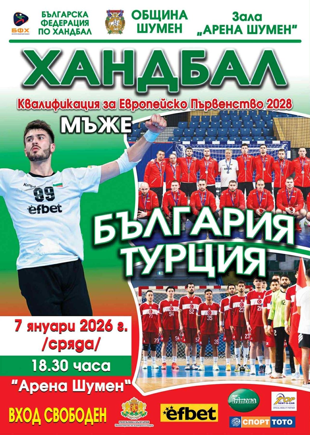 Шумен е домакин на мач от предварителните квалификации (т. нар. Promotion Round) за Европейското първенство по хандбал при мъжете през 2028 г.