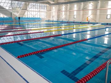 Комплексът разполага с два басейна, които вече работят – голям с размер 33,3х25 метра и малък с размер 16х12,5 метра