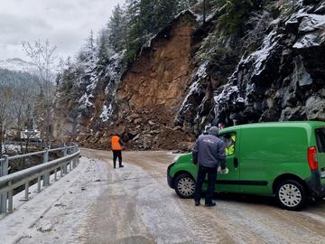 Трафикът се осъществява двупосочно в една лента, съобщиха от Агенция "Пътна инфраструктура". На мястото в събота вечерта се срути скална маса и изцяло затвори републиканския път Смолян - Девин, на около два километра преди село Стойките. Шофьорите могат да ползва и обходния маршрут: Асеновград - Пловдив - Кричим - Девин - Стойките и обратно. Трафикът се регулира от "Пътна полиция", призоваха от АПИ. Специализирана техника продължава да работи за разчистването на свлачището, предаде БТА.
