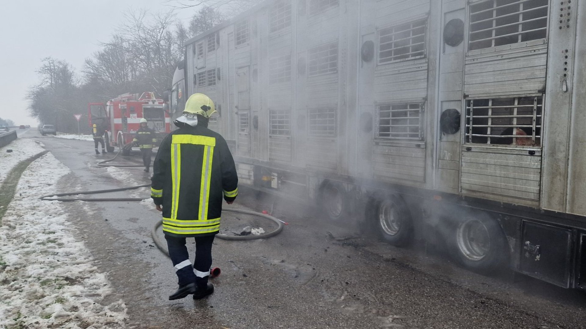 Камион, натоварен със 178 живи прасета, се запали край Димитровград, съобщава БТА.