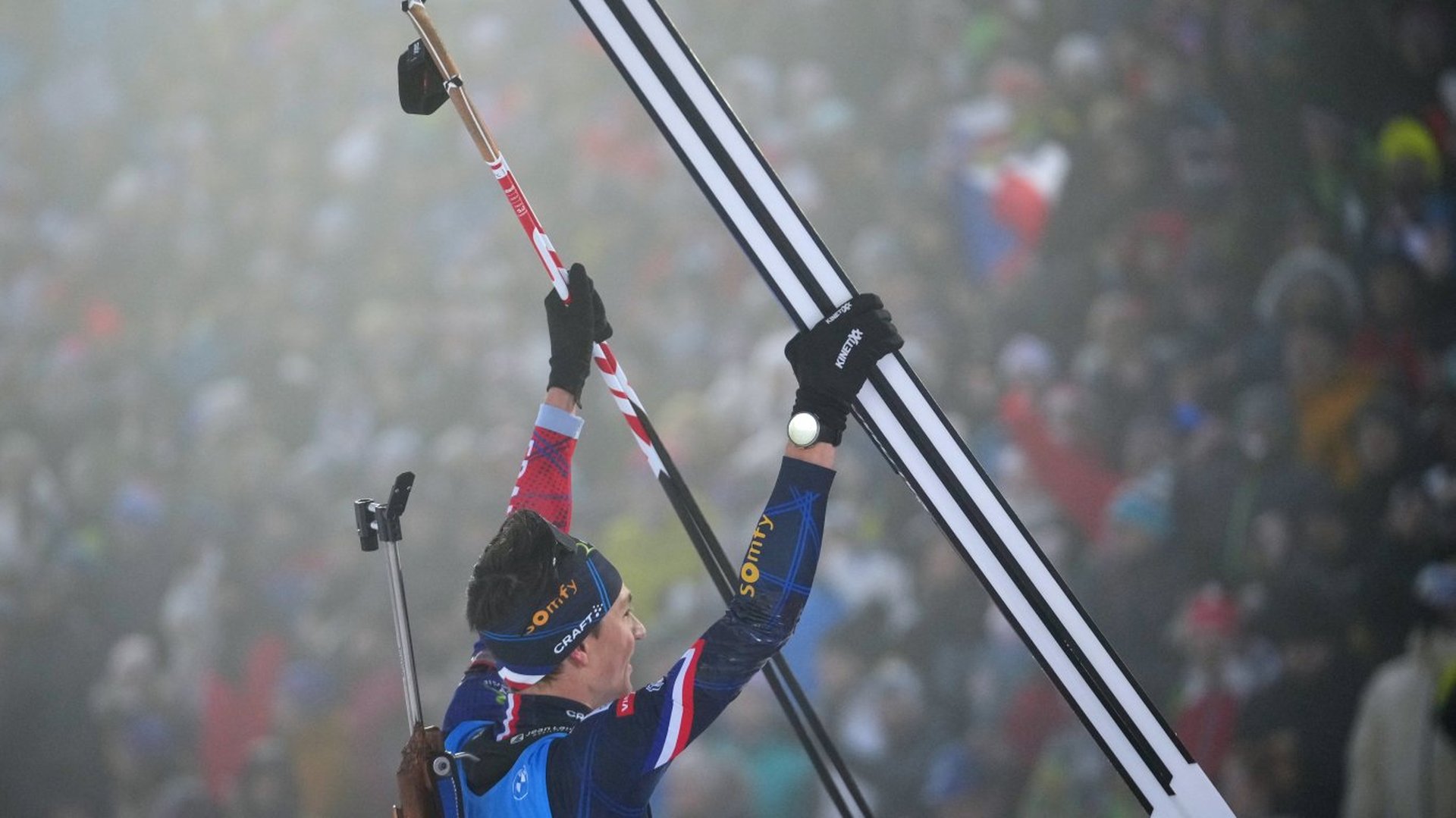 Французинът Ерик Перо спечели масовия старт от Световната купа по биатлон за мъже в Нове Место и оглави генералното класиране преди Олимпийските игри в Италия. Той записа втората си победа от началото на сезона, седма в кариерата и трета в масов старт.