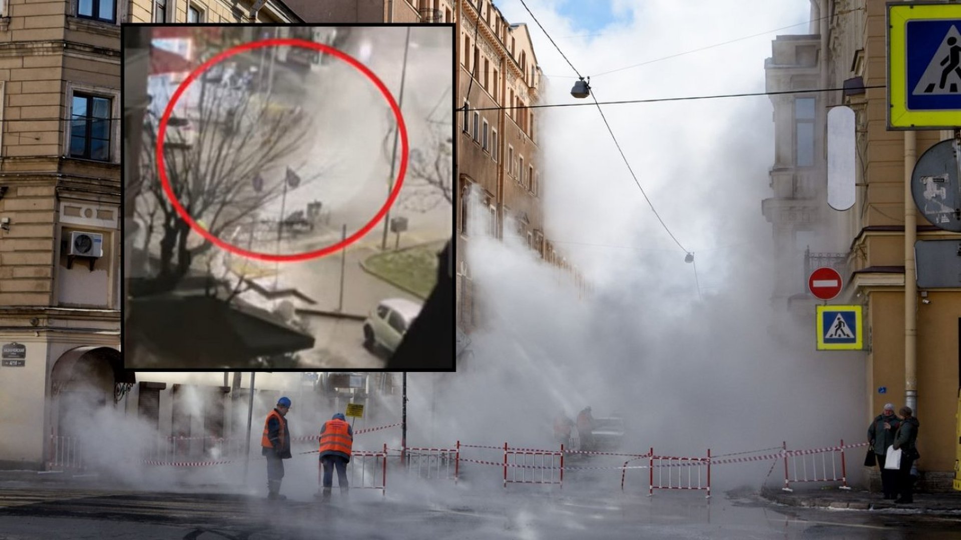 Във видеоматериал, разпространен от телевизията, се вижда вода от скъсаната тръба да изригва с голяма сила, а един от работниците да пада на земята, ударен от отломките.