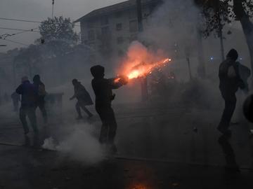 По време на сблъсъците с полицията в края на демонстрацията, по униформените са били хвърляни камъни, коктейли "Молотов" и други предмети. Подпалени бяха и контейнери за боклук, както и полицейски бус. Един полицай е бил удрян и с чук по време на сблъсъците, а кадрите от тази атака се завъртяха в социалните мрежи.