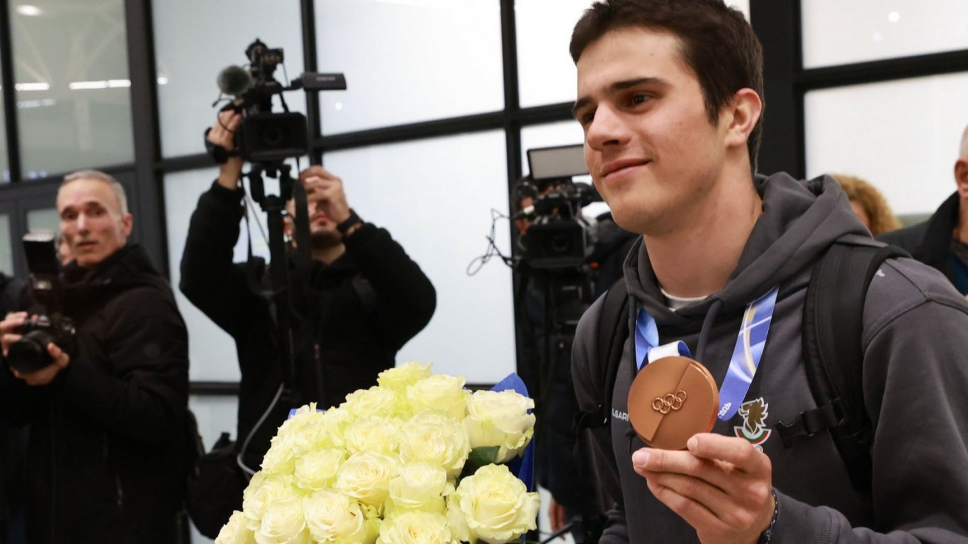 20-годишният сноубордист гордо показа бронзовия си медал от паралелния гигантски слалом, а пред събралите се журналисти каза, че с това отличие вече е изпълнил детските си мечти.