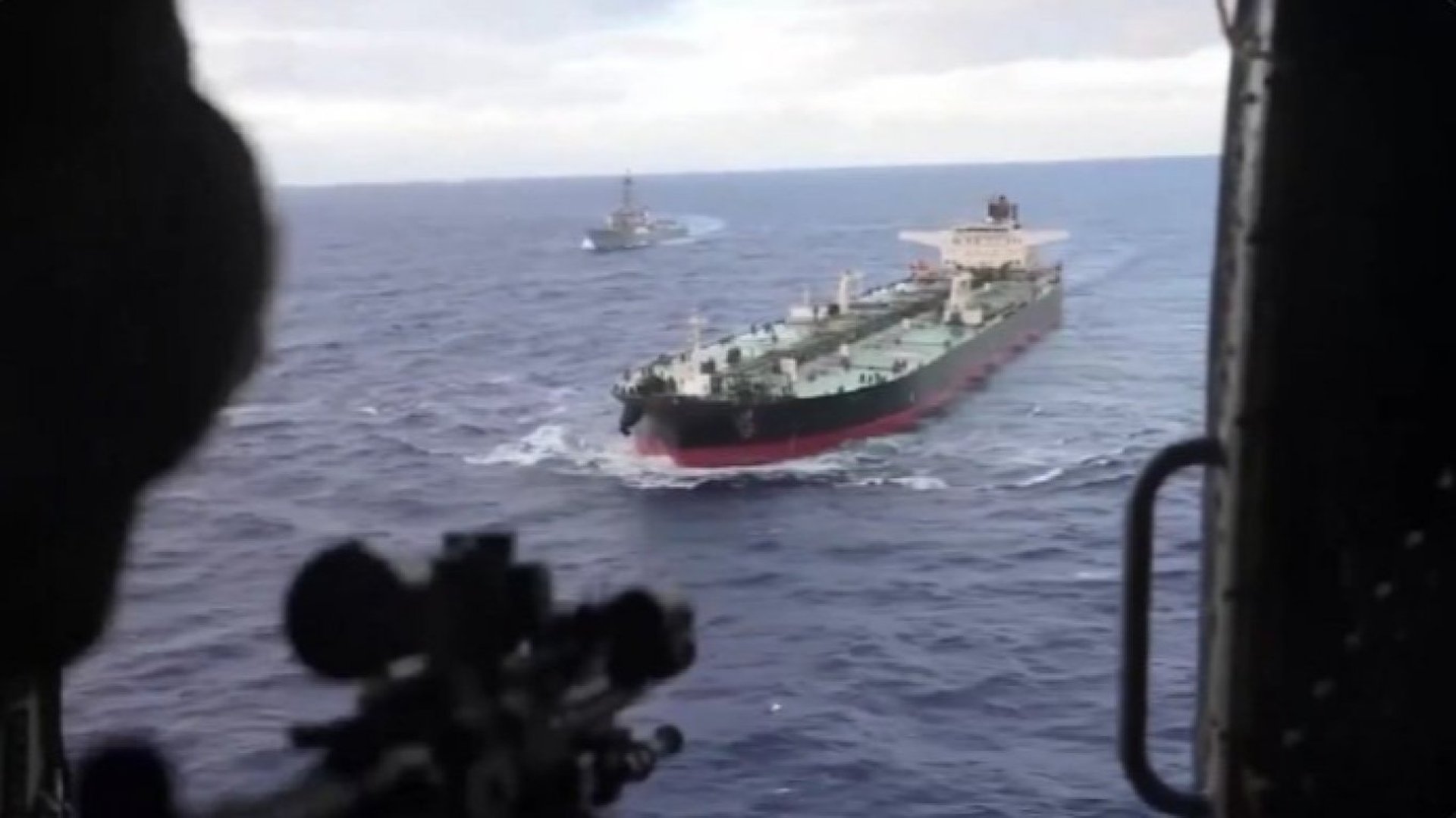 На кадри от видеоклип и от снимки, заснети от хеликоптер, се вижда ескадрен миноносец на Военноморските сили на САЩ, плаващ успоредно с танкера. От видеото не става ясно към коя агенция принадлежат силите, които са задържали кораба, отбелязва АП.