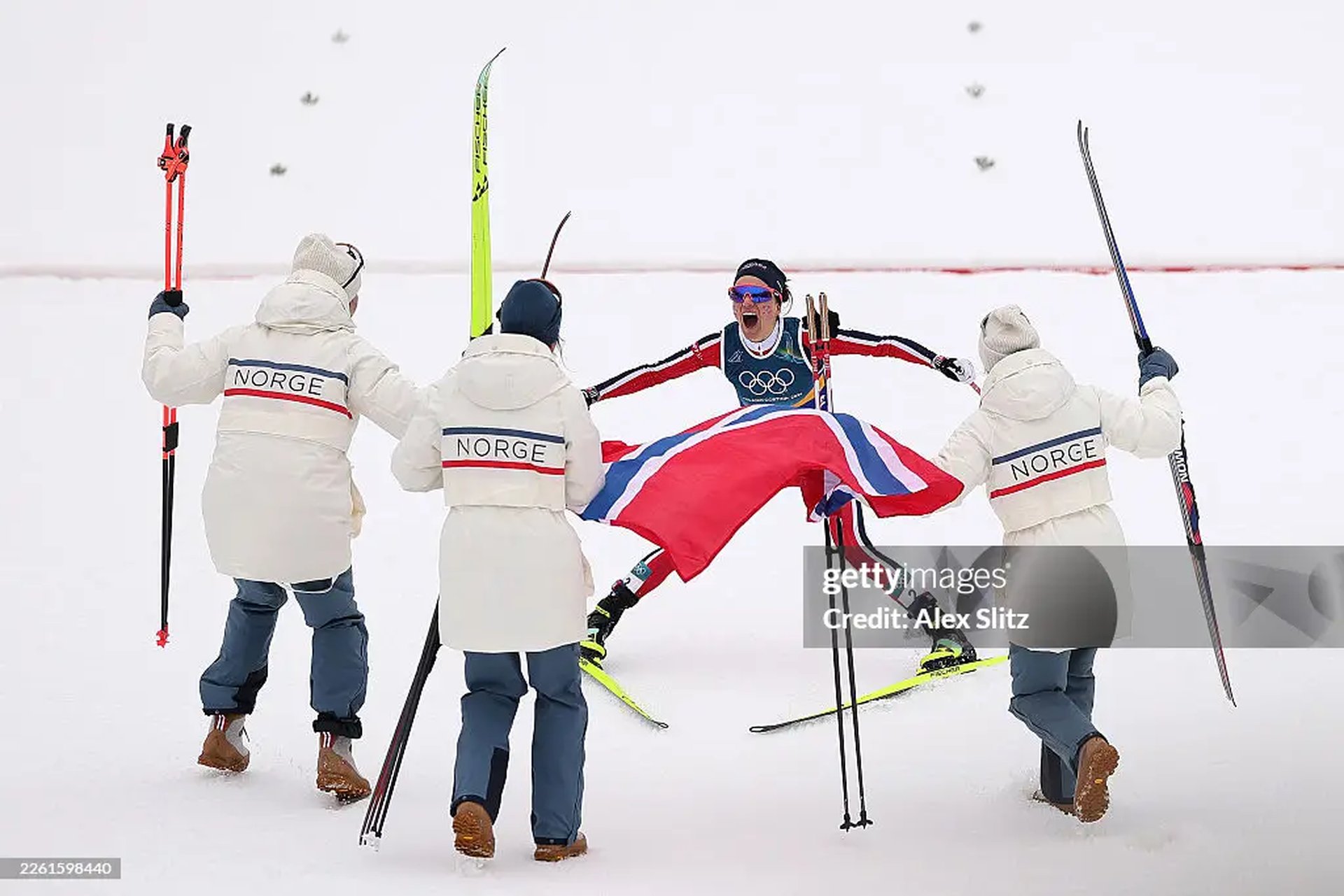 Отборът на Норвегия спечели щафетата 4 х 7.5 километра в ски бягането при жените на Зимните олимпийски игри в Милано-Кортина. Норвежките Кристин Фоснес, Астрид Слинд, Каролине Симпсон-Ларсен и Хайди Венг направиха отлично състезание, поеха водачеството от началото и не допуснаха никой да застраши победата им. Щафетата на Норвегия записа време 1:15:44.8 часа.