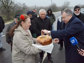 Кметът на община Шумен Христо Христов откри днес символично ремонтираната пътна отсечка от 7-ми километър до моста след Лозево. Хората от селото го посрещнаха с хляб и сол.
