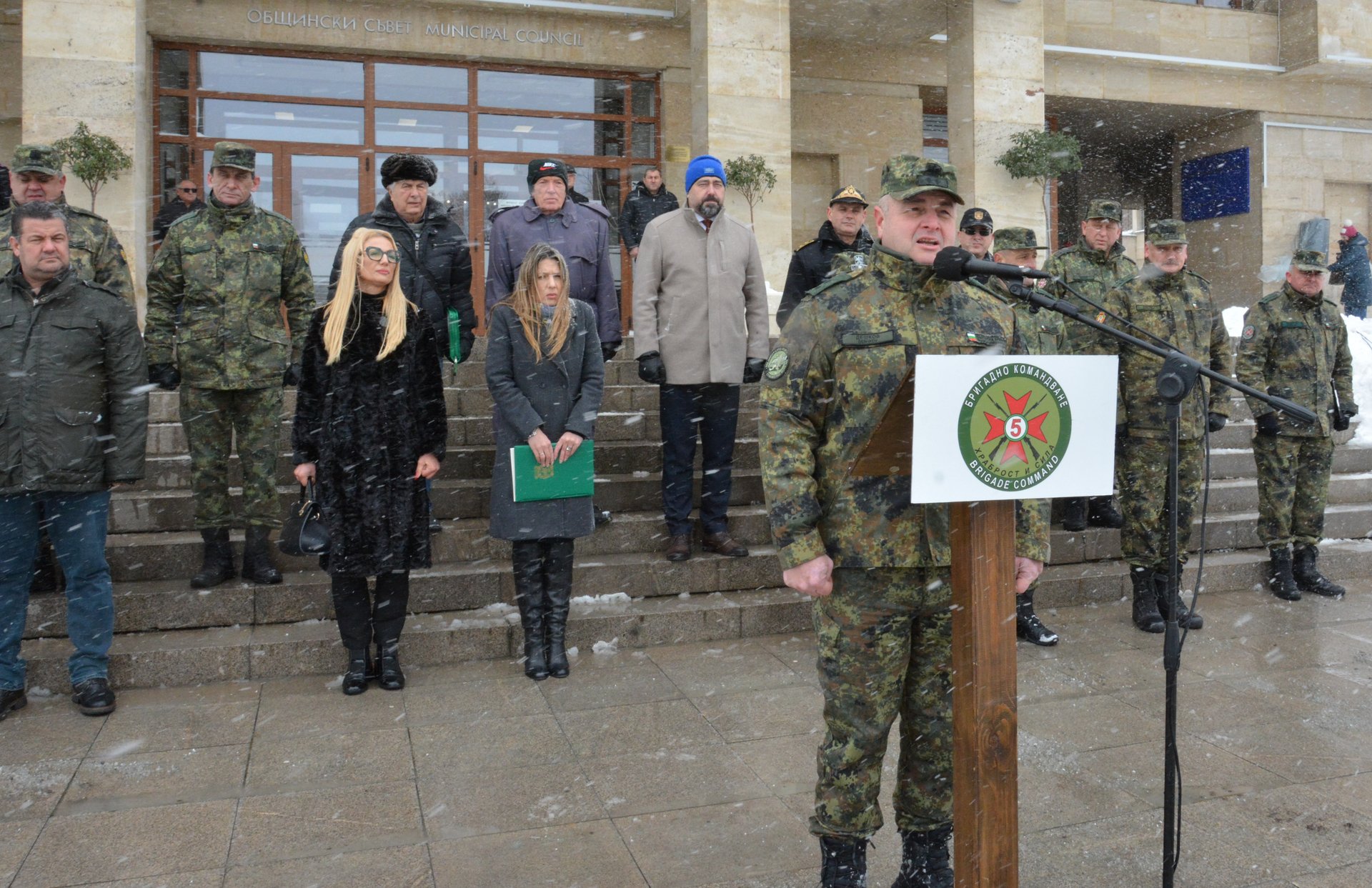 Церемонията се проведе пред сградата на Община Шумен – мястото, от което бяха изпратени преди 6 месеца. Присъстваха председателят на Общинския съвет на Шумен Ася Аспарухова, зам.-кметовете на Шумен Николай Колев и Даниела Савчева, представители на силовите структури, близки на войниците.
