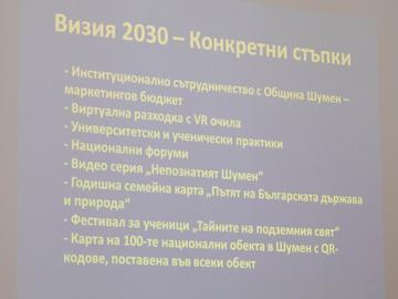 „Още едно кътче от община Шумен влиза сред обектите в туристическата карта на страната и така разширяваме туристическия потенциал на цялата област“, каза Владимир Йолов. Той представи визия за развитие на туристическия продукт до 2030 година с конкретни точки за изпълнение.