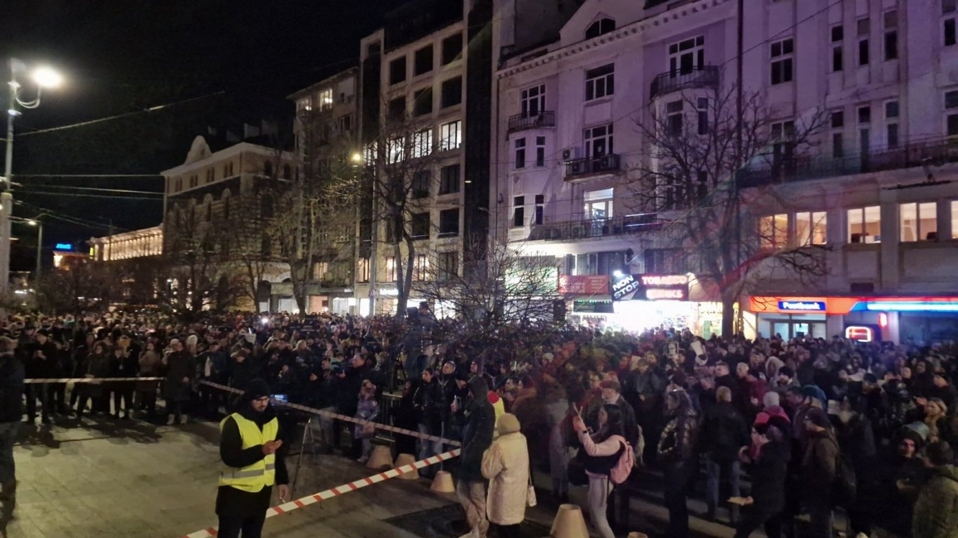 Граждани протестират пред Съдебната палата в София с искане за оставка на изпълняващия функциите (и.ф.) главен прокурор Борислав Сарафов. Движението в района е ограничено, има засилено полицейско присъствие.