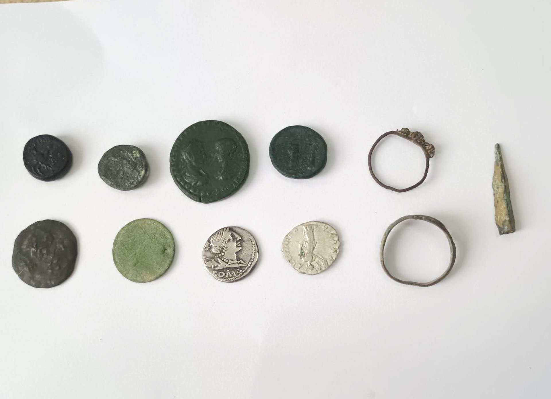 В жилището на 61-годишния е намерен металдетектор, иззети са и осем монети, два пръстена и връх на стрела. По първоначални данни носят белези на исторически ценности.