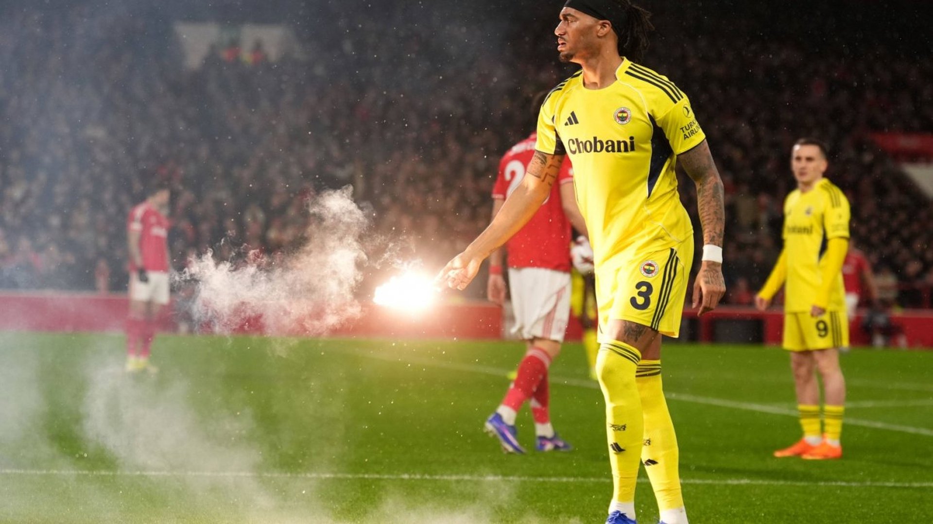 Но Калъм Хъдсън-Одой върна едно попадение за Нотингам в 68-ата минута, за да спре устрема на турските играчи и тяхната луда публика, засипала с факли и димки терена в първите минути.