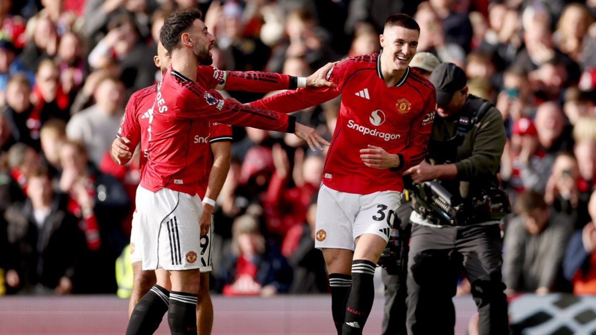 Имаше спор дали нарушението е вътре в полето, а след разглеждане с ВАР съдията Крис Кавана потвърди решението си и дори изгони с директен червен картон защитника. От бялата точка Бруно Фернандеш бе точен за 1:1, а в 65-ата минута португалският майстор даде и асистенция към Бенямин Шешко, който вкара впечатляващо с глава за 2:1. За словенеца това бе шести гол от началото на сезона във Висшата лига.