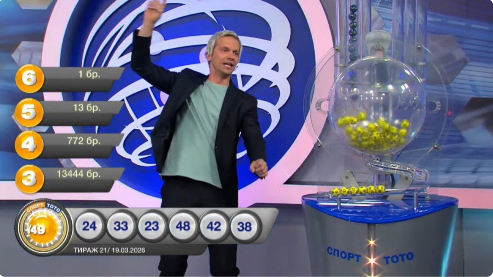 В тираж 21 на играта "6 от 49" късметлия е спечелил джакпота от 5 778 403 евро.