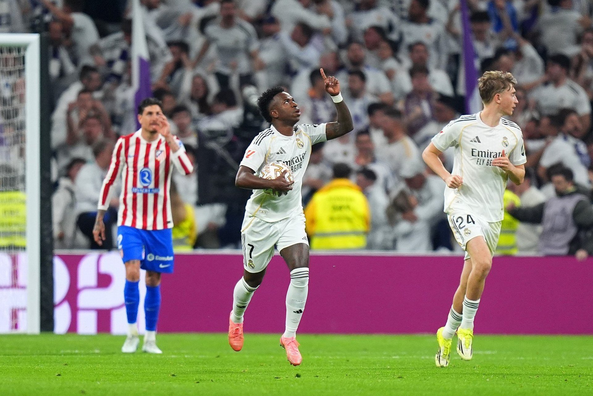 На "Бернабеу" имаше всичко - обрати, красиви попадения, дузпа и червен картон за "кралския клуб" и по традиция много здрава игра от възпитаниците на Чоло Симеоне. Гостите веднъж поведоха в резултата, веднъж го изравниха, но играч на мача беше съперникът им Винисиус, който вкара две попадения. Поражението оставя Атлетико на четвъртата позиция с актив от 57, като "лос колчонерос" вече са зад Виляреал, който е с 58.