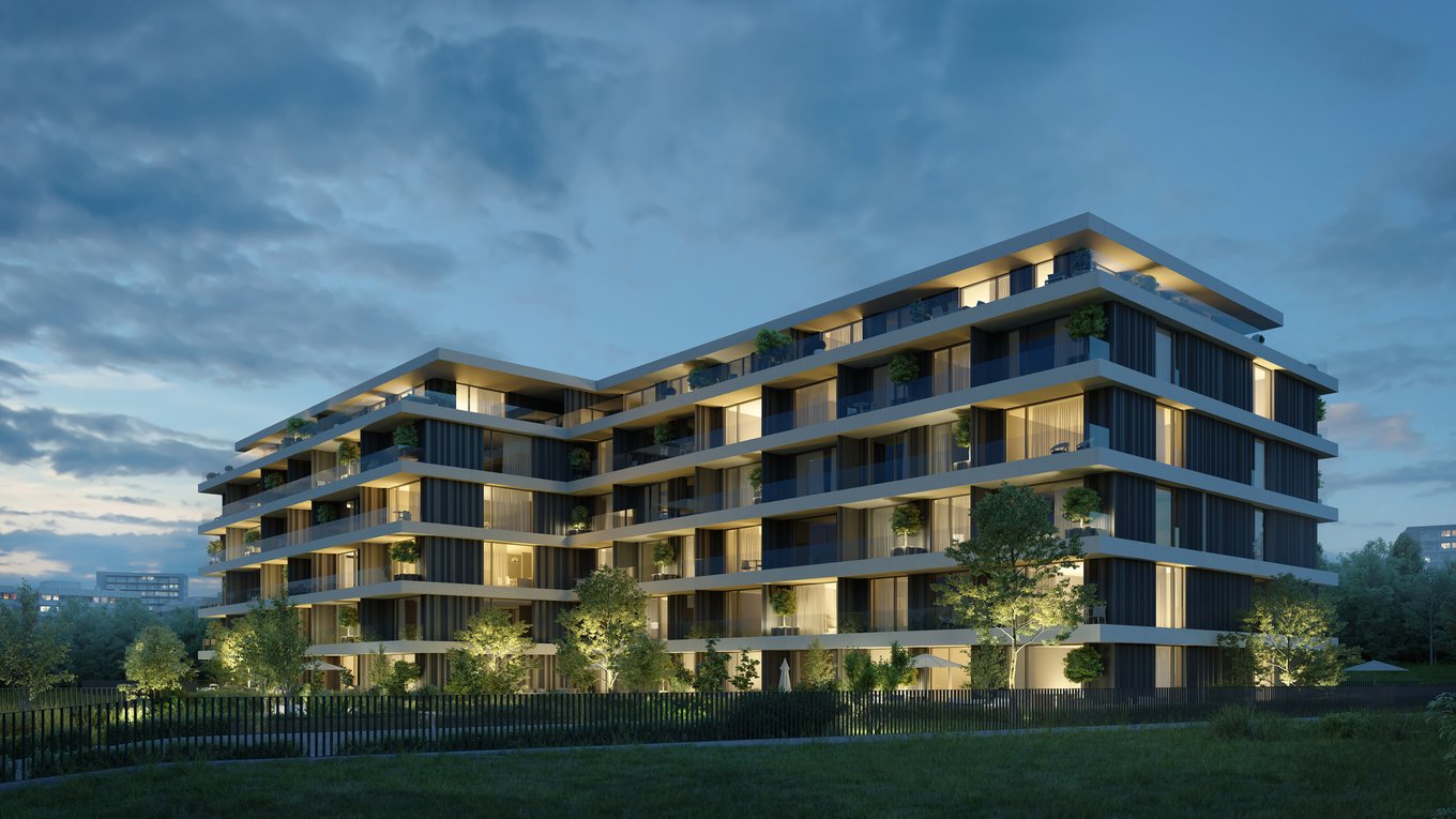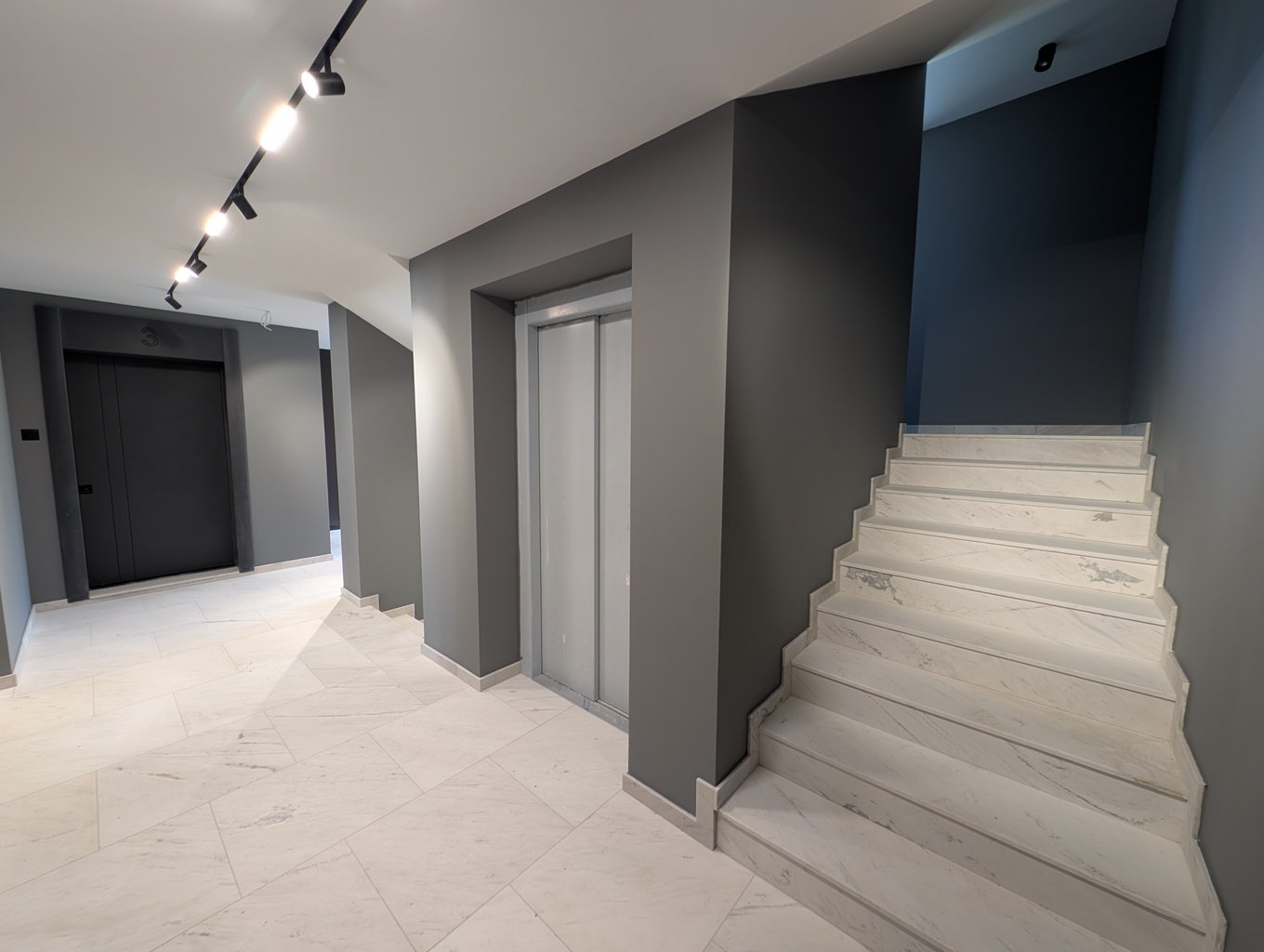 Шестетажната сграда е единствената в града, която впечатлява със своята елегантна визия, съчетана от модерна облицовка LAMINAM, с вентилируема алуминиева фасада и луксозни общи части.