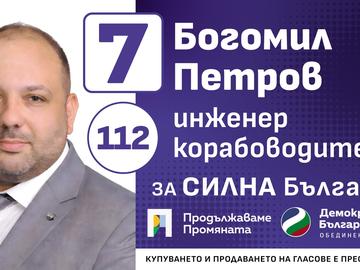 Експертността в местната власт внася общинският съветник Богомил Петров. Той познава механизмите на управление в детайли и работи за политики, които директно да повишат качеството на живот в Община Шумен. Заедно с енергията на маркетолога Цветозара Живкова и представителя на младото поколение Марин Траев, те оформят отбор, който ще работи за ефективното представителство на Шумен в следващия Парламент.