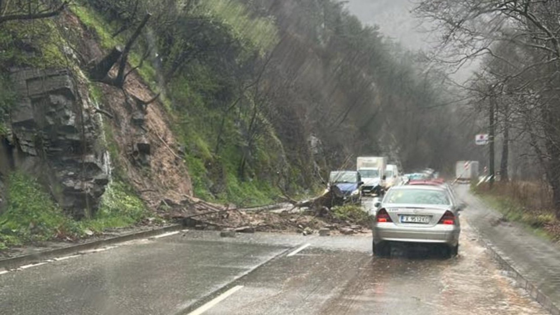 Там има паднало дърво на пътното платно, а след излизане от селото има образувано срутище. Причината са свлачища и срутвания са обилните дъждове.