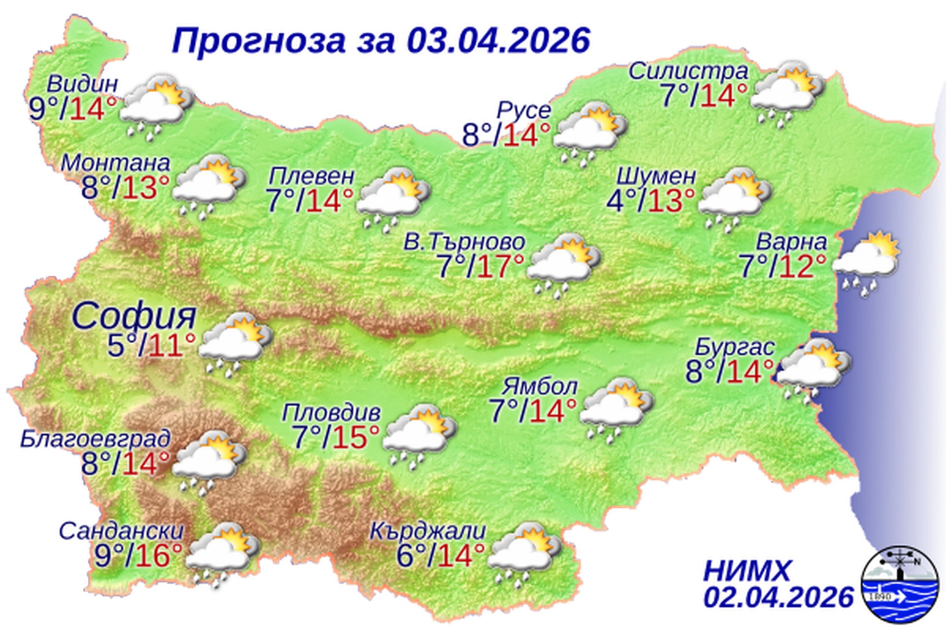 Дневните температури ще се повишат и максималните ще са между 11° и 16°.