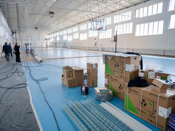 Залата за волейбол, баскетбол и хандбал също е затворена за тренировки и състезания – там се монтират нови климатици.